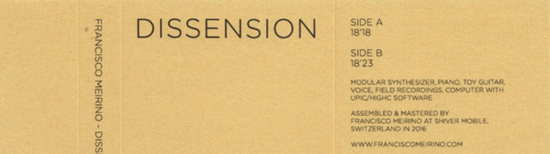 You have to dig down, deep enough, to discover something that will make you dig deeper & deeper. After listening to Francisco Merino’s “Dissension” you will appreciate the fact that you came out alive after all & this is certainly a good start, isn’t it? (label press-release)
