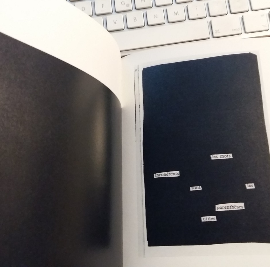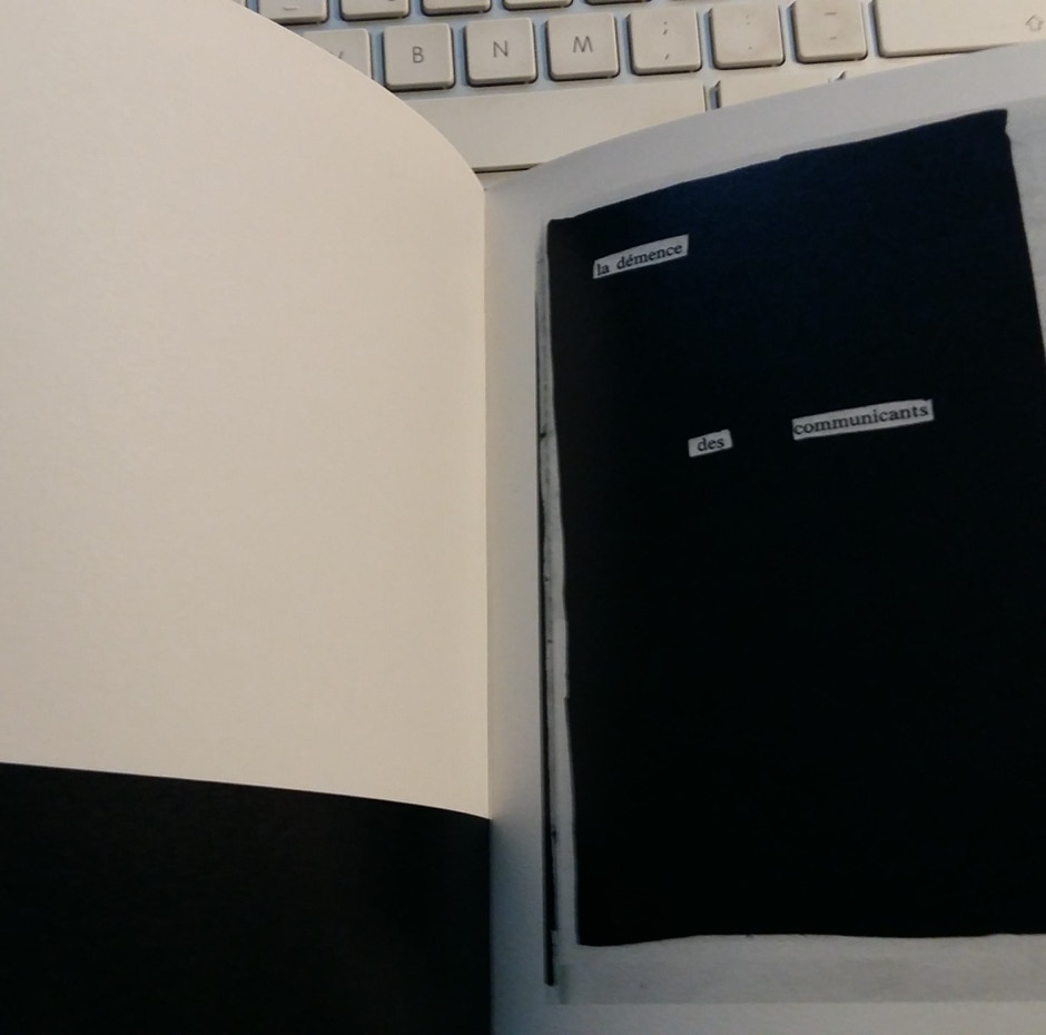 Le créateur poursuit son goût pour les modifications, les filtres ou extraits qui semblent tirés d’un contexte énigmatique pour obtenir une telle substance suffisamment abstraites pour transformer le romanesque et obtenir une forme de "véda" plus ou moins chamanique. L’espace de la page "normale" est inversée : le fond est noir, le texte y apparaît en insert dans ce qui tient d’un réductionnisme un rien "punk" .