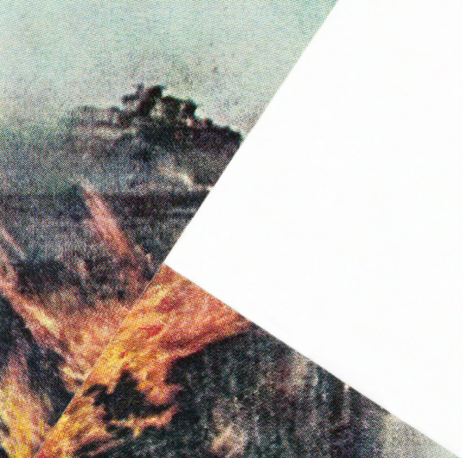 every collage is made of one cut : a straight line between corners, and a 90 degree movement. An attempt at shape a new reality out of historical, war and architecture photo archives.