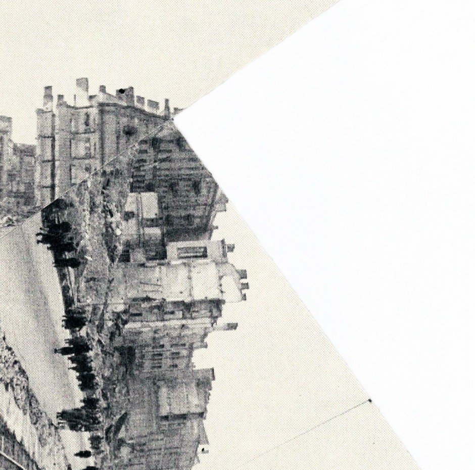 every collage is made of one cut : a straight line between corners, and a 90 degree movement. An attempt at shape a new reality out of historical, war and architecture photo archives.